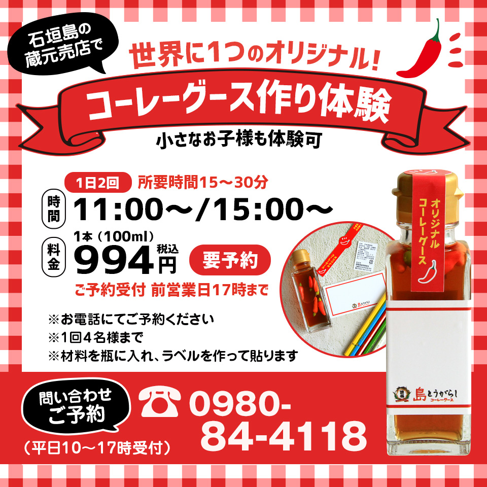 🌶コーレーグース作り 11:00~/15:00~(要予約)