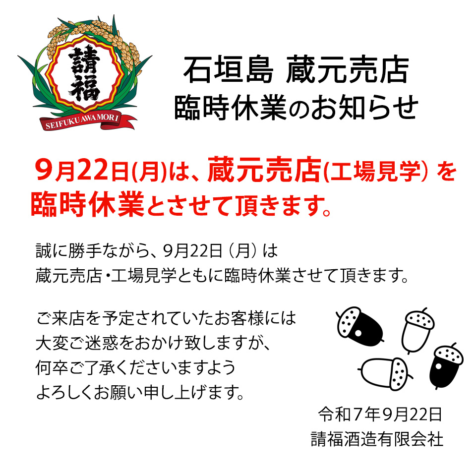 蔵元売店・工場見学ともに臨時休業させて頂きます。
